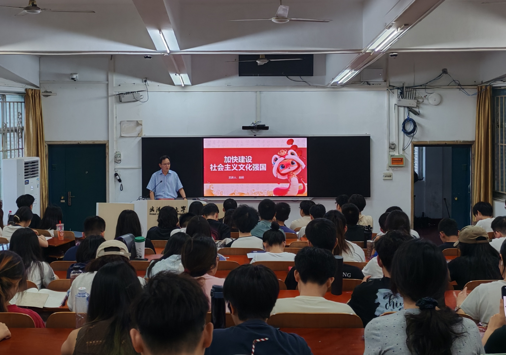 On the afternoon of May 22nd, Zhao Jing, Deputy Secretary of the University Party Committee, delivered a lecture on "Current Affairs and Policy" to the undergraduate students of the Class 2022 Big Data Management and Application program in Room 201 of Hongyi Building at the East Campus of Mafangshan. The topic of the lecture was "Accelerating the Construction of a Socialist Cultural Power."