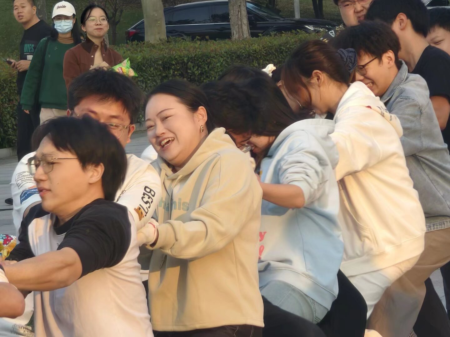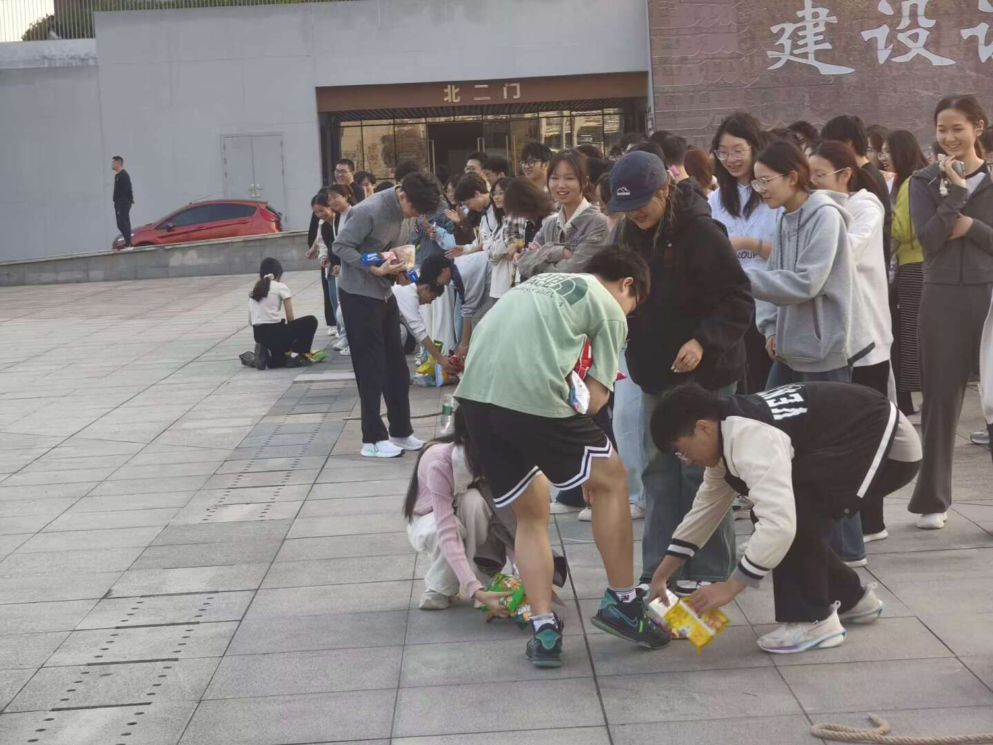 活动伊始,趣味“抢零食”环节率先点燃了现场气氛。各班参赛选手精神饱满,跃跃欲试。随着口令响起,同学们迅速投入“战斗”,大家手脚并用,“战况”焦灼,在阵阵欢呼声中,参赛选手们抱着战利品回到本班。抢零食环节有效激发了同学们的参与热情,为后面的拔河比赛“蓄能”。
