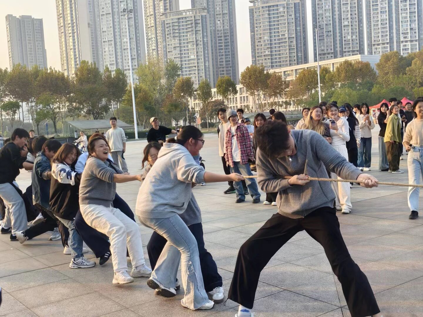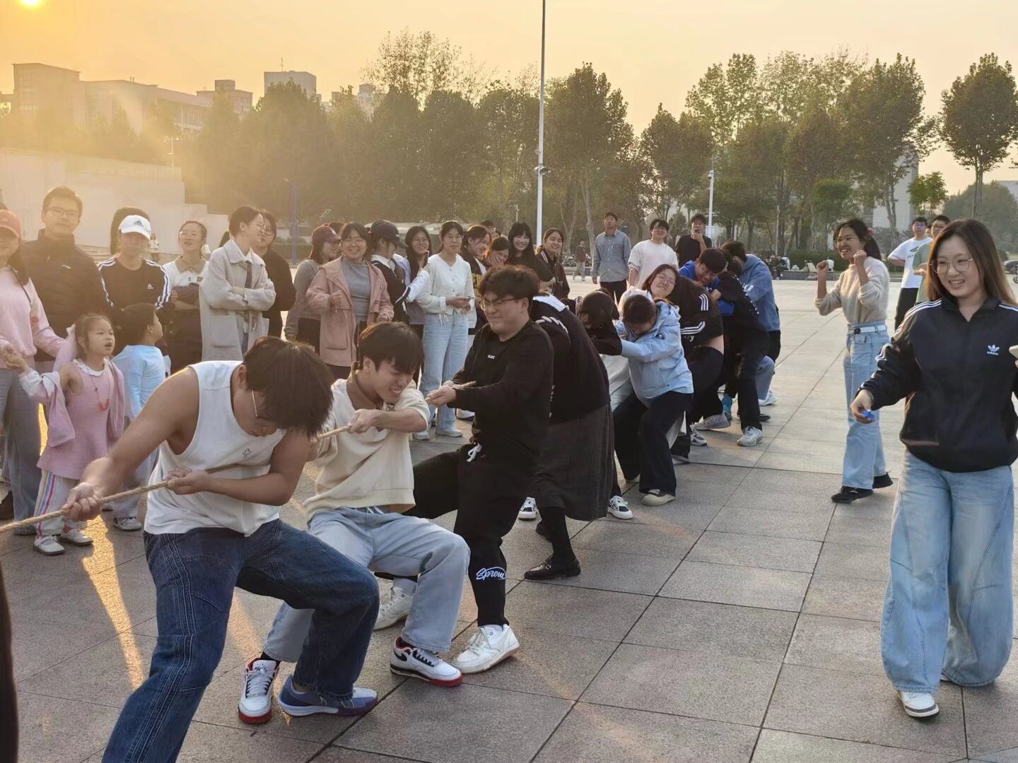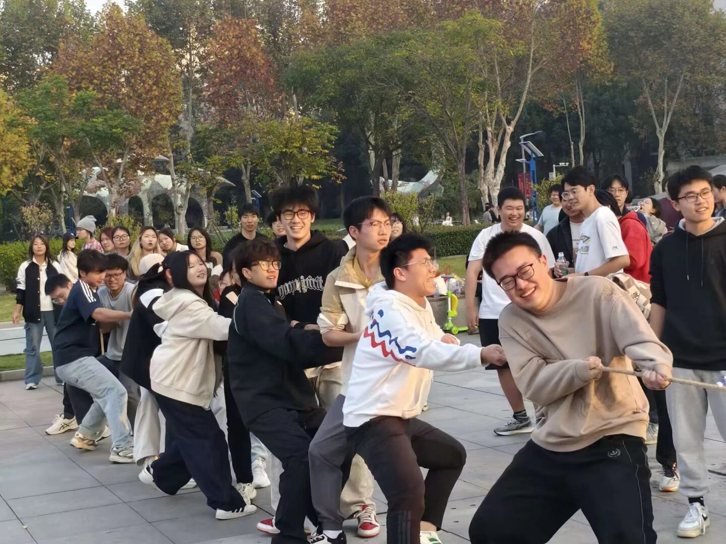 秋光正好,青春当燃。为帮助同学们缓解学业压力、丰富校园生活、增进同窗情谊,11月16日16点至17点,安全应急学院2023级本科生“凝聚‘食’力・拔河争霸赛”户外年级周会在博学广场顺利开展。本次活动由体育部长万紫旋主持,辅导员王红红、安全2302班班主任李萍和全体同学参加。