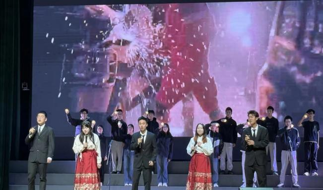 管科类2505班同学合唱《无名之辈》,唱响青春在奋斗中绽放,以青春活力点燃现场观众们的激情。