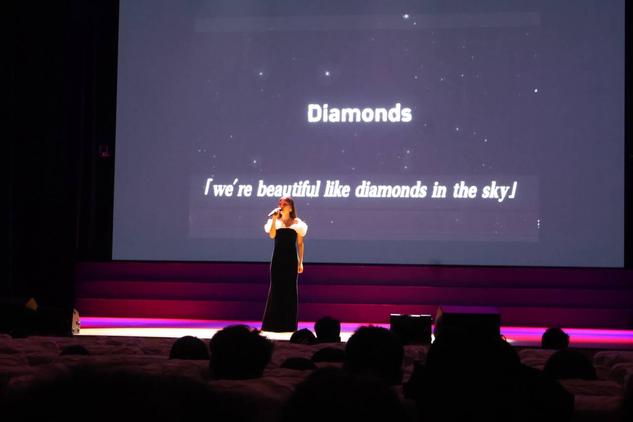 此外,娜菲莎同学的独唱《diamonds》、陈文戈同学独唱《这世界那么多人》、管科类2501班童年歌曲串烧将新才晚会氛围推上高潮。