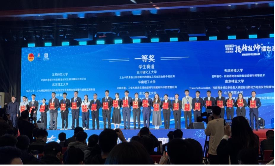第十九届“挑战杯”竞赛2025年度中国青年科技创新“揭榜挂帅”新能源领域主擂台赛于10月12日至14日在北京市昌平区成功举办。大赛聚焦新能源技术前沿瓶颈,吸引了全国240余支高校团队参与终审擂台赛的角逐。经过激烈比拼,我院学生团队成功斩获国家级一等奖,实现了学院在该赛事中的历史性突破,充分展现了我院在拔尖创新人才培养方面的显著成效。
