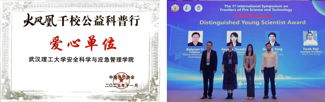 我院院长李开源教授带领4名研究生参加会议。其中,我院被评为“火凤凰”千校公益科普行爱心单位,李开源教授被授予的“FIRE Phoenix Distinguished Young Scientist Award”(杰出青年科学家奖)。该奖项经过12位国际火灾领域专家同行评审,一同获得该奖的国际学者有来自东京工业大学的Sayaka Suzuki教授、比利时根特大学的Tarek Beji教授及东北林业大学的杨光教授。