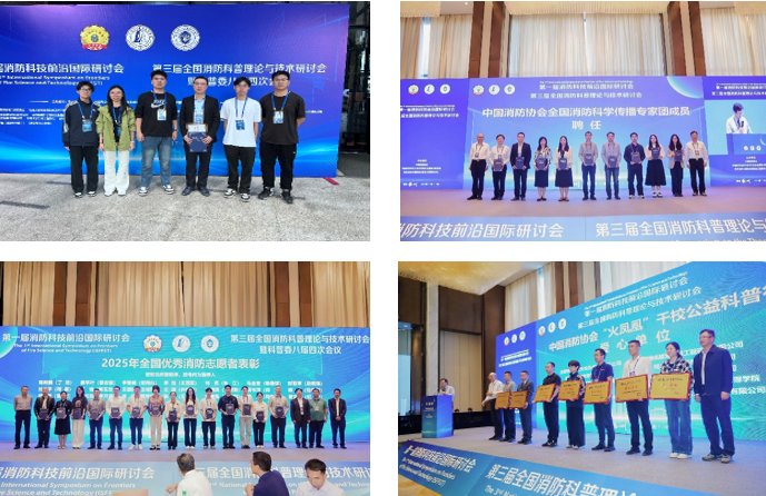 博士研究生陈湛文做《Experimental study on the enthalpy characteristics of thermal runaway gases and jet fire behavior of lithium batteries (modules)based on a large-scaledual calorimetry system》口头报告,详细介绍了本院在锂电池热失控领域的研究成果,并获优秀论文奖(1/17),课题组优秀毕业生杨云彭博士被评为2025年全国优秀消防志愿者。