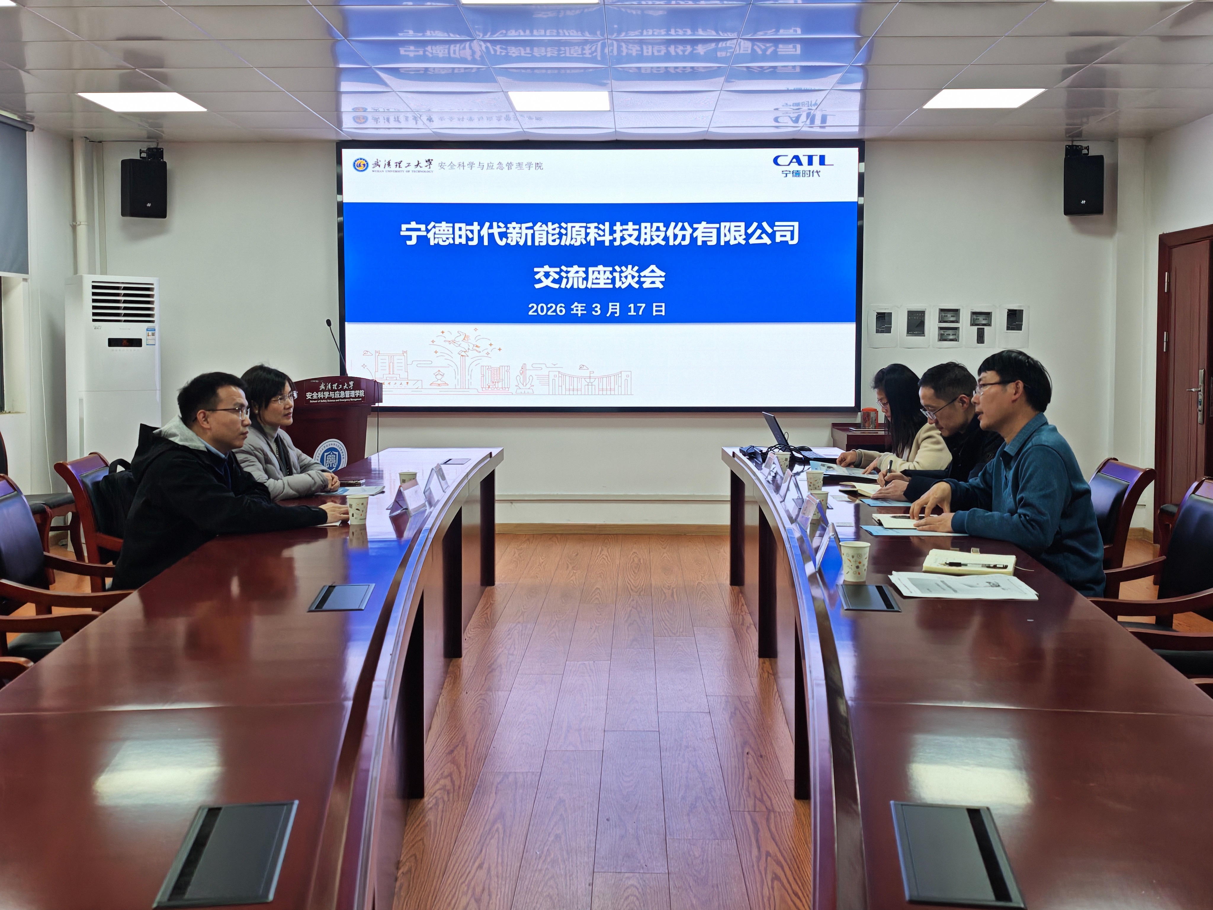 3月17日下午,宁德时代新能源科技股份有限公司电芯设计部总监喻鸿钢一行来院调研交流,学院党委书记曲帅锋、副院长吕伟、党委副书记廖明静、毕业班辅导员杜奥迪参加交流座谈会。