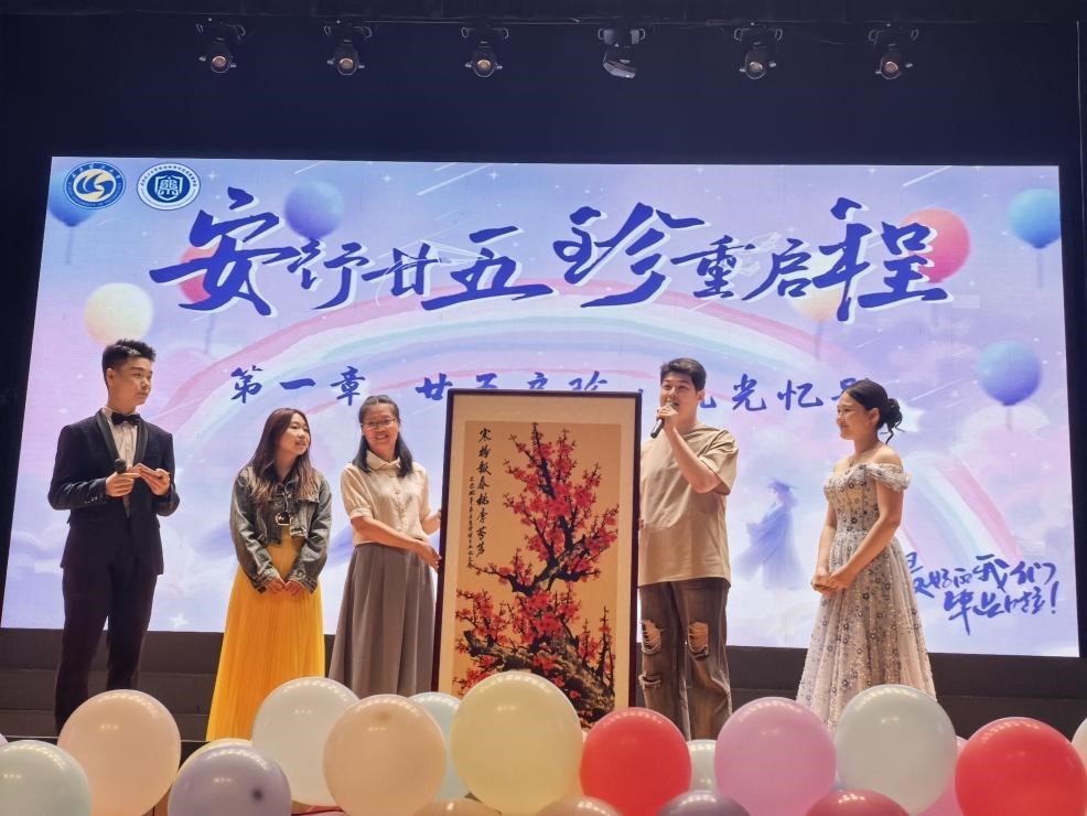 整场晚会精彩纷呈,掌声与欢笑不断,更交织着感动的泪水。每一个音符、每一段舞步都诉说着在理工大、在安全应急学院共同度过的珍贵时光,饱含着毕业生们对母校、母院和师友的深深眷恋与感恩。应急2101班池文杰代表全体毕业生将其国画作品《寒梅报春·桃李芬芳》赠送给学院,党委副书记廖明静则代表学院向全体毕业生表达了最热烈的祝贺和最美好的祝愿,希望他们珍藏这份青春记忆,自信勇敢地开启人生新篇章,在各自的领域发光发热,常怀感恩之心,常回母校看看,并祝愿大家前程似锦,一生平安顺遂!